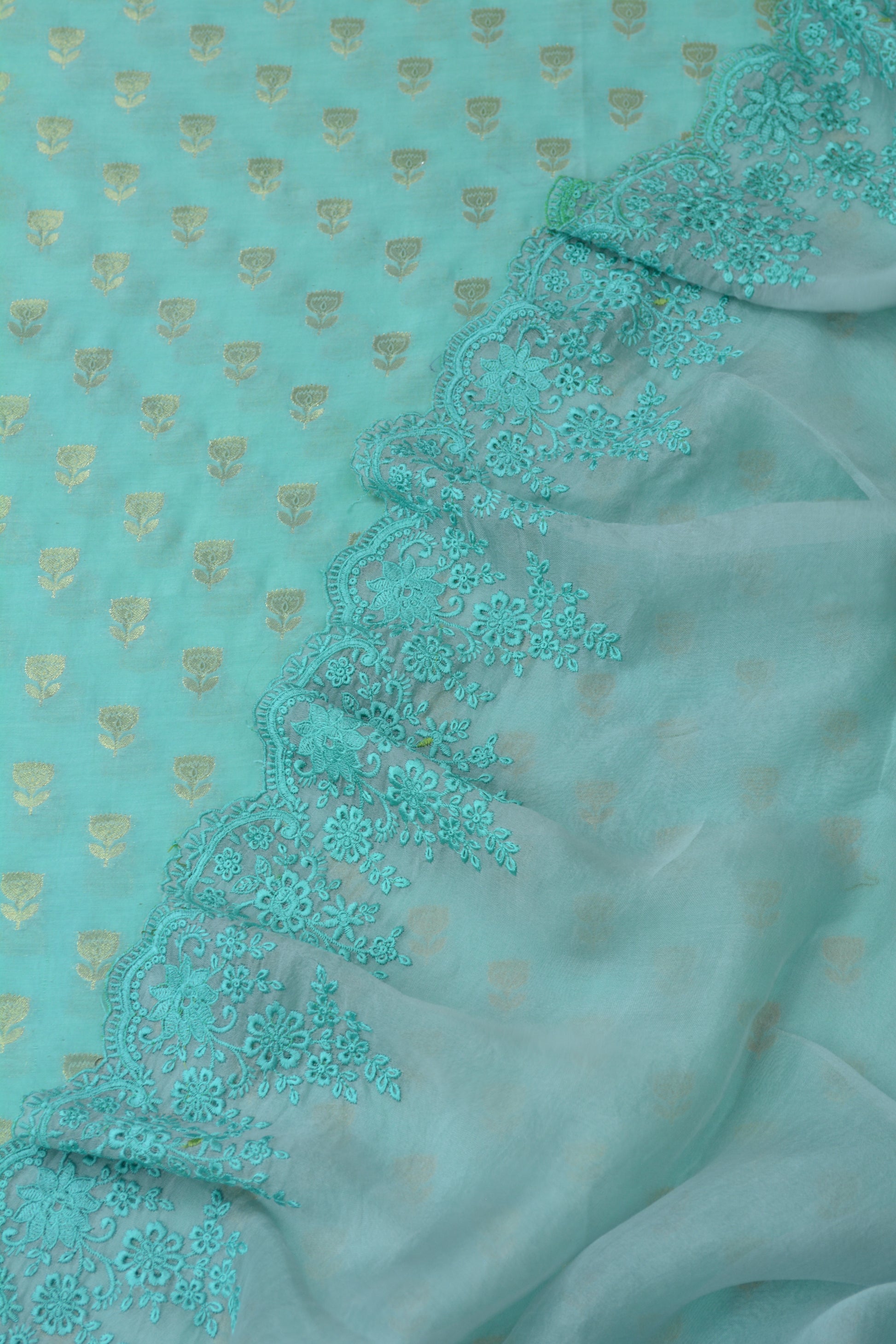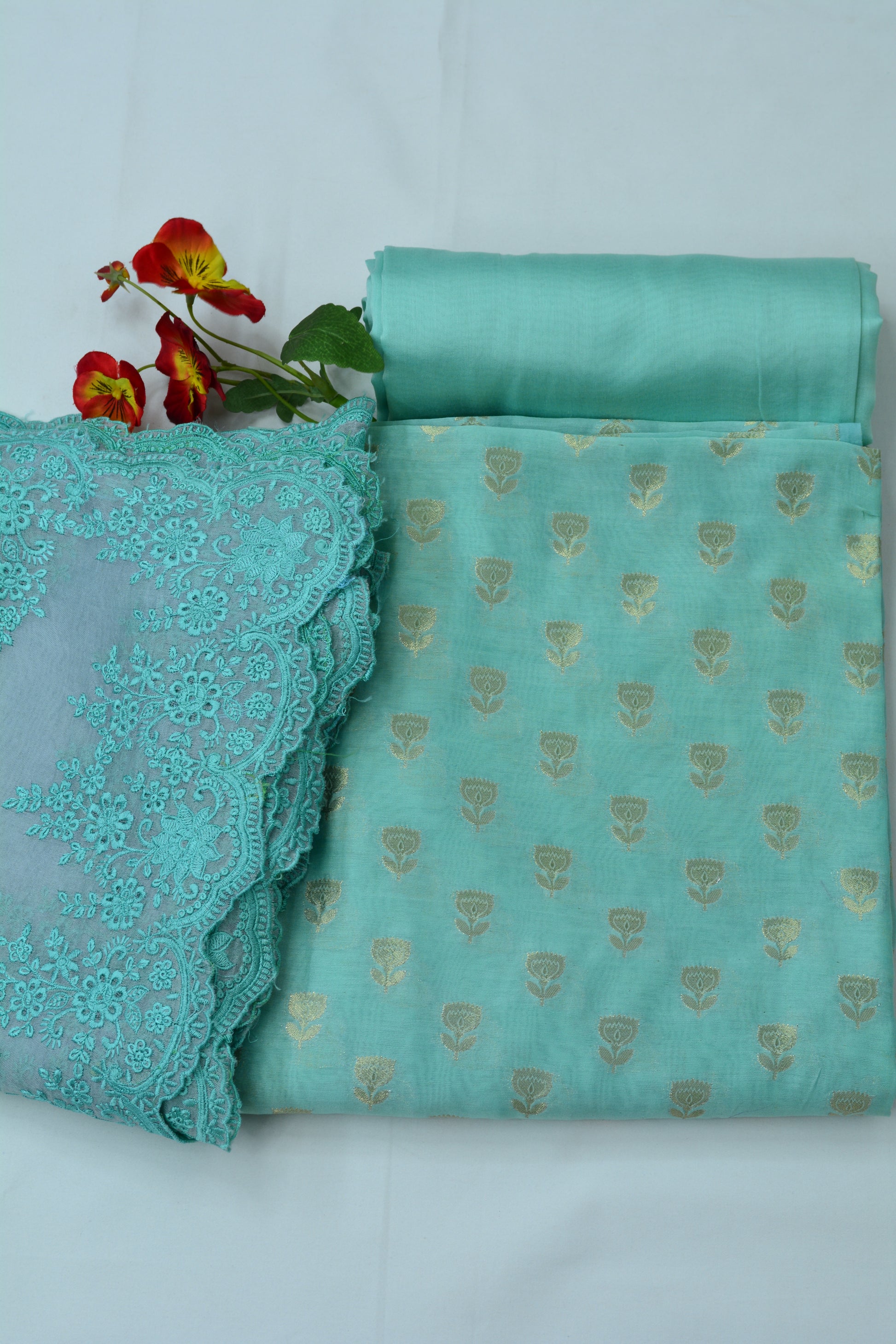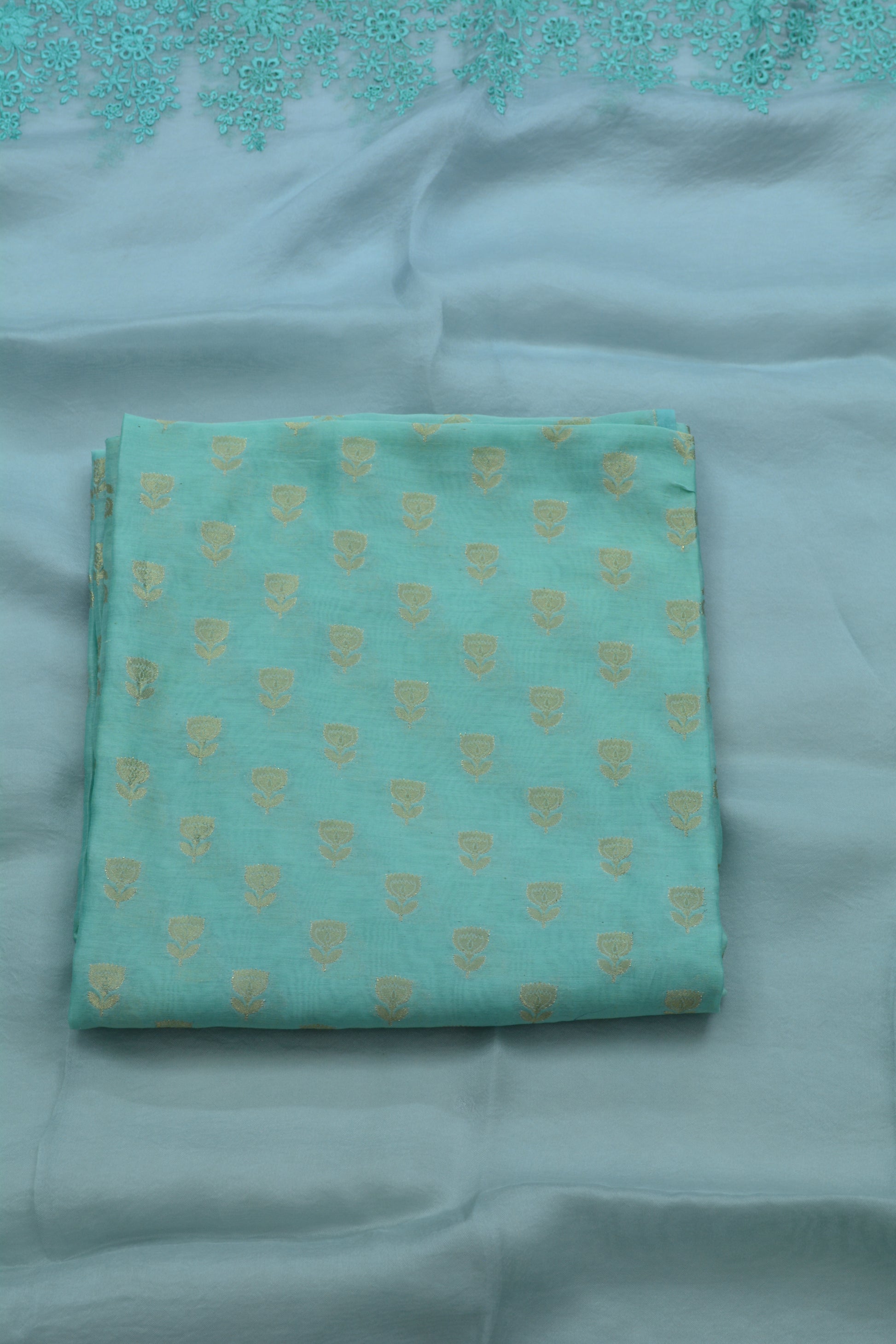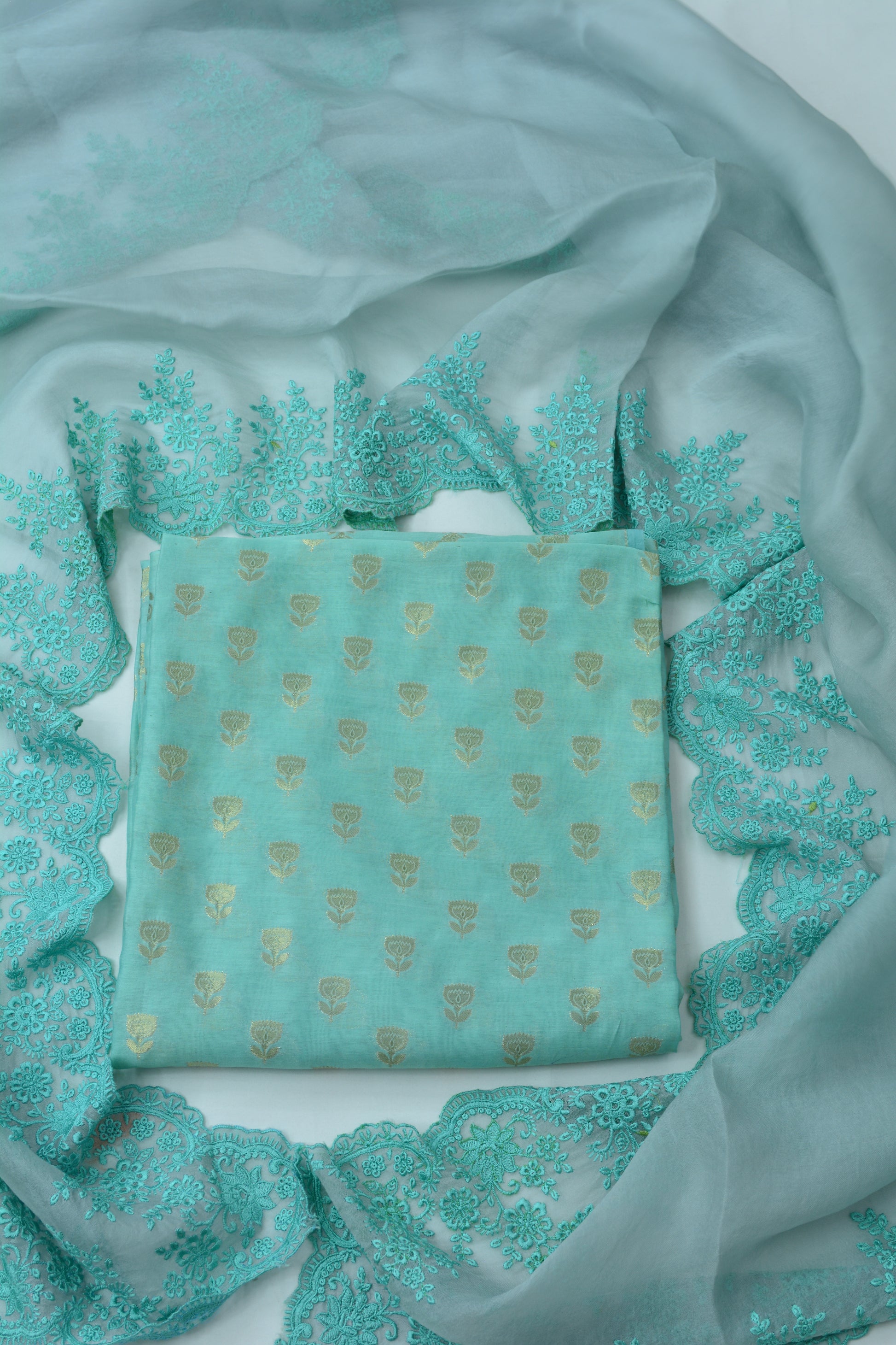 Premium woven Chanderi shirt and pure Chanderi bottoms coordinated with pure embroidered organza dupatta 🌸