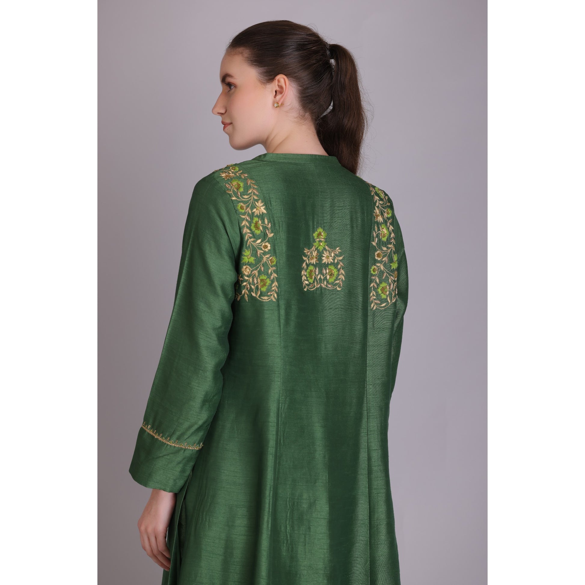 FRESH MINT VISCOSE DUPION EMBROIDERED KURTA WITH AN ENSEMBLE OF SEQUIN, RESHAM AND DABKA, TEAMED UP WITH MATCHING PANTS.