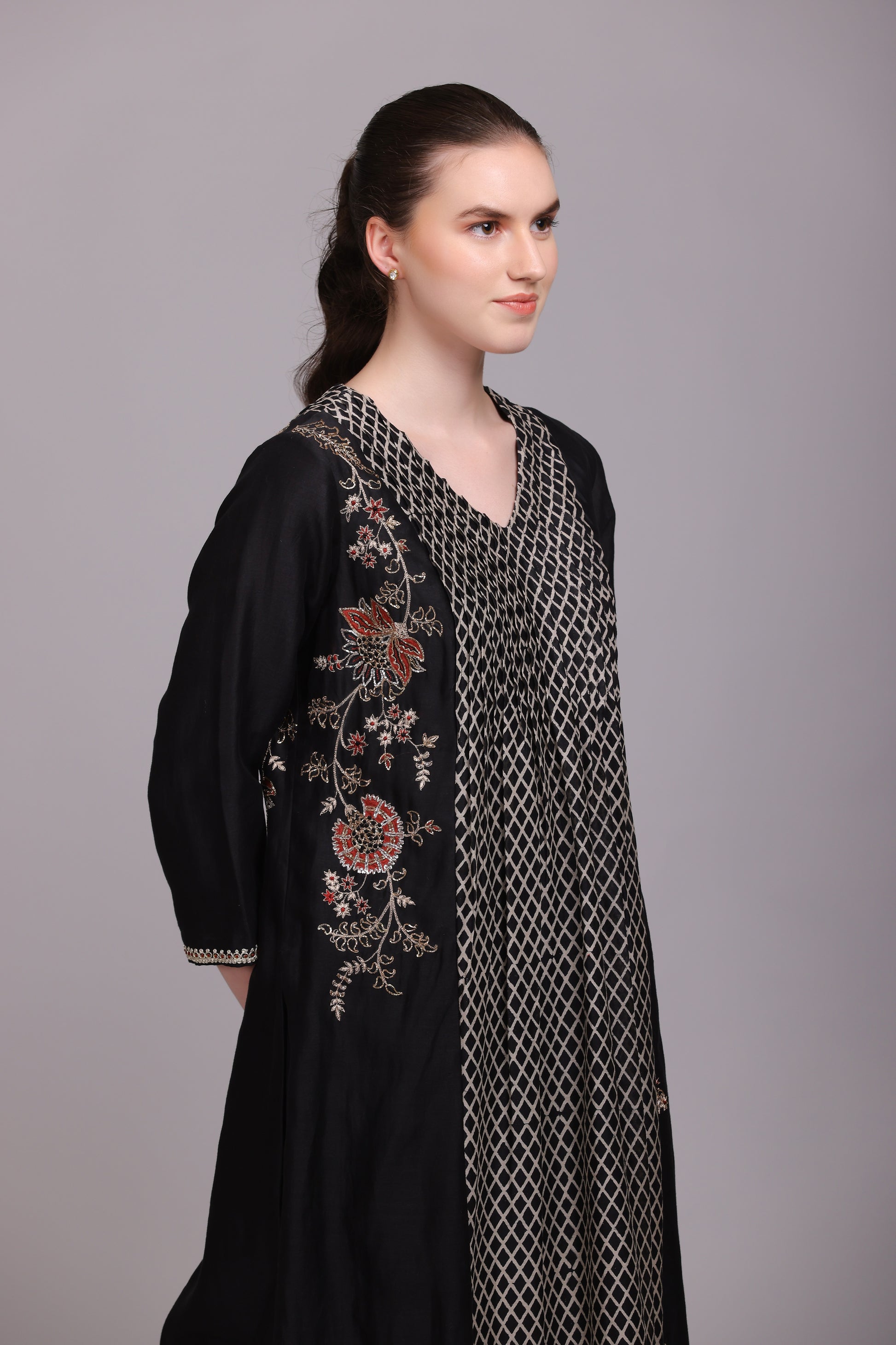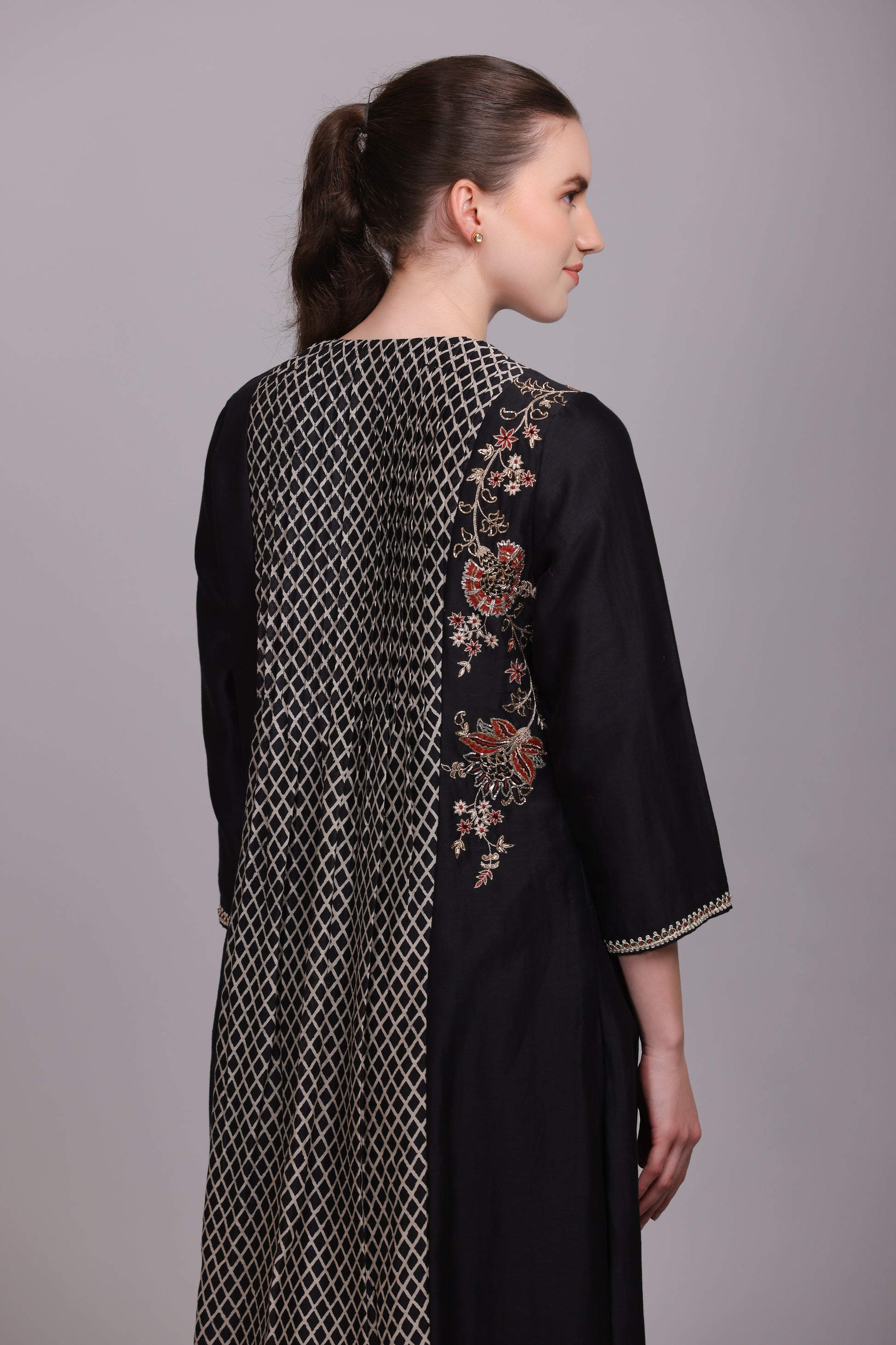 M6-08A BLACK EMBROIDERED KURTA SET